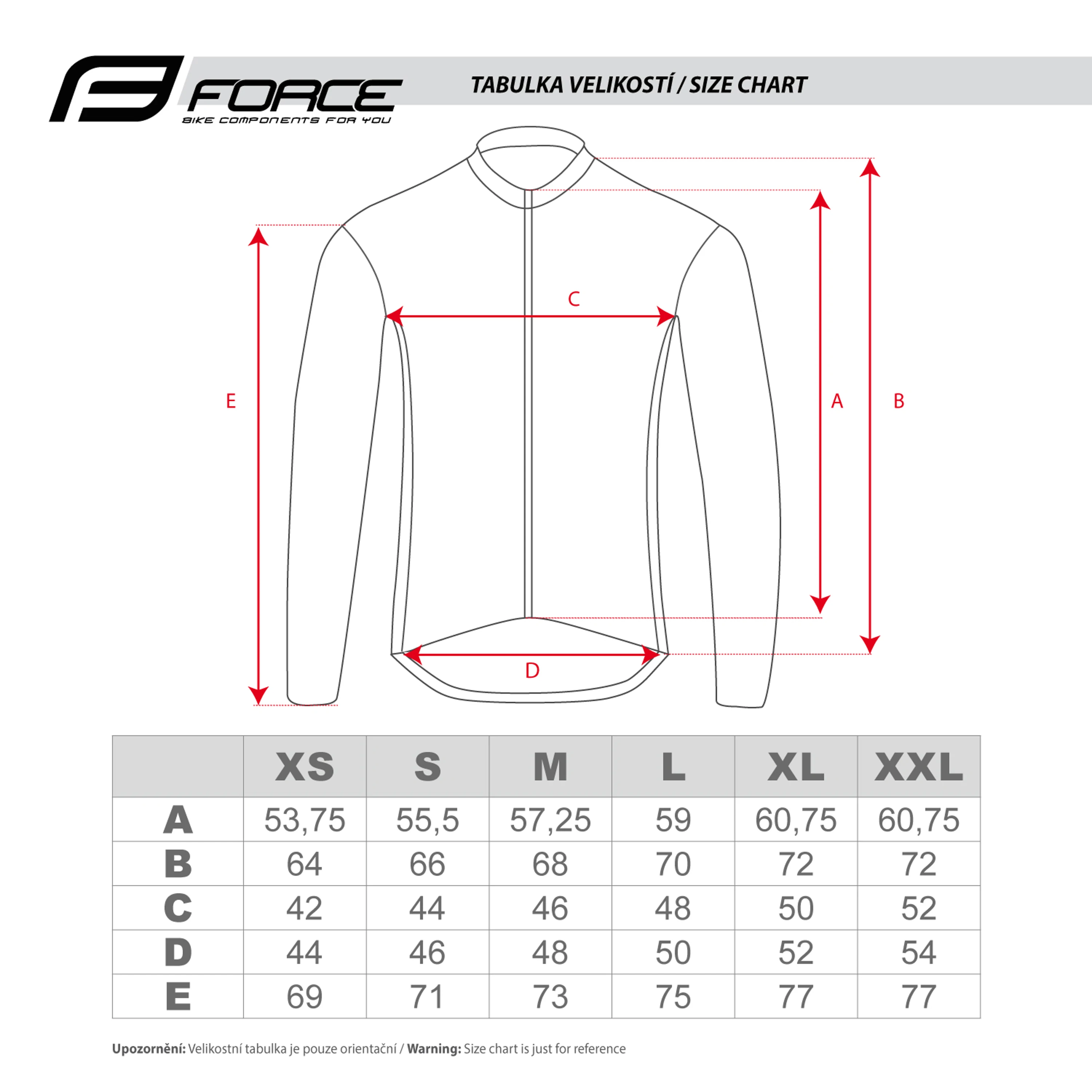 Download Force size chart (the measurements refer to the garment placed on a surface, compare with a similar garment of your size).